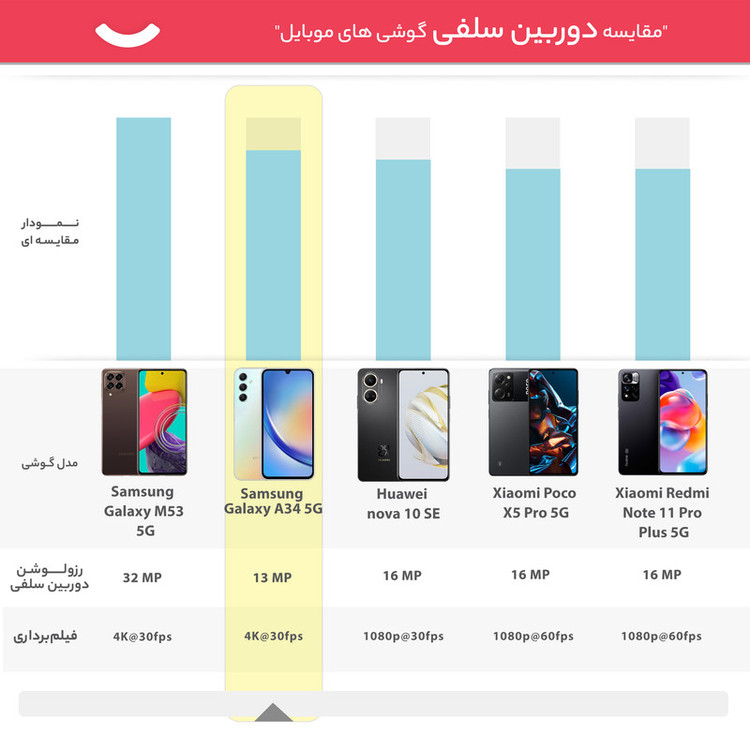 سامسونگ در زمینه گوشیهای هوشمند میانرده تا به امروز توانسته است با معرفی محصولاتی با مشخصات فنی مناسب و قیمتی مقرون بهصرفه، عملکرد بسیار خوبی را به نمایش بگذارد. سامسونگ Galaxy A34 5G هم یکی از این گوشیهای هوشمند دوست داشتنی این شرکت است. صفحهنمایش جذاب و قدرتمند 6.6 اینچی این گوشی با رزولوشن بسیار خوب و نرخ بروزرسانی فوقالعاده 120 هرتز، چیزی کم از یک پرچمدار ندارد و سامسونگ دوباره ثابت کرد که در زمینه صفحهنمایش هنوز هم حرفهای بسیاری برای گفتن دارد. در بخش سنسورهای دوربین هم سنسور دوربین عریض 48 مگاپیکسل این گوشی توانایی ثبت تصاویر بسیار جذاب و باکیفیتی را در نور روز و نور شب دارد. سنسور دوربین فوقعریض 8 مگاپیکسل این گوشی هم با زاویه دید 123 درجه، امکان ثبت تصاویر جذابی را در طبیعت و فضای باز دارد. سنسور دوربین 5 مگاپیکسل ماکرو هم برای ثبت تصاویر از فاصله نزدیک این گوشی را همراهی میکند. دوربین سلفی 13 مگاپیکسل این گوشی هم سوای عمکلرد بسیار خوب در نور روز، توانایی فیلمبرداری با نهایت کیفیت 4K را دارد. پردازنده دیمنسیتی 1080 شرکت مدیاتک هم این گوشی را همراهی میکند که سوای عملکرد بسیار خوب در اجرای بازیها حتی سنگین، سبب شده تا این گوشی همانطور که از نامش پیداست، توانایی پشتیبانی از شبکههای اینترنتی نسل پنجم یا همان 5G را داشته باشد. باتری با میزان ظرفیت 5000 میلیآمپرساعت هم به ازای هر بار شارژ صد درصدی در حالت استفاده معمولی، طول عمر مفید (زمان آماده بهکار) دو روز را ارائه میکند. در مجموع باید بگوییم که اگر به دنبال خرید گوشی میانردهای هستید که از صفحهنمایشی در حد و اندازه یک گوشی پرچمدار، سنسورهای دوربین متنوع و قدرتمند و پردازنده مناسب برای اجرای بازیهای سنگین بهره برده باشد، این گوشی میتواند یکی از بهترین انتخابهای ممکن باشد.