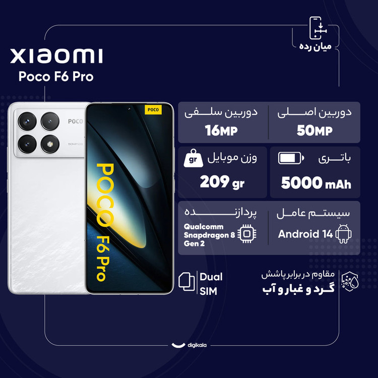 گوشی موبایل شیائومی مدل Poco F6 Pro دو سیم کارت ظرفیت 512 گیگابایت و رم 12 گیگابایت