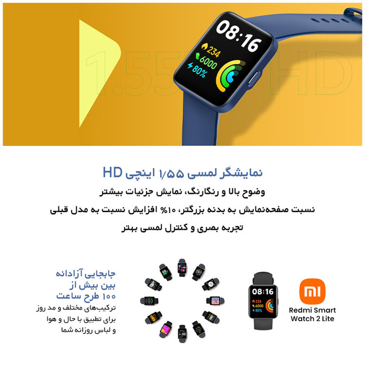 ساعت هوشمند شیائومی مدل Redmi Watch 2 Lite طرح بند سلیکونی