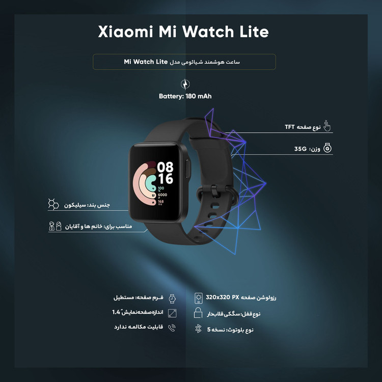 ساعت هوشمند شیائومی مدل mi watch lite بند سلیکونی
