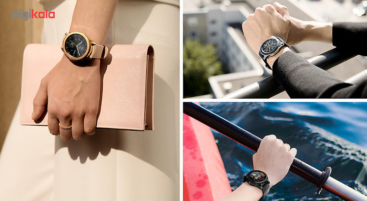 ساعت هوشمند سامسونگ مدل «Galaxy Watch SM-R800» در سال 2018 و همزمان با Note 9 رونمایی شد. این ساعت هوشمند که استفادهی روزمره و ورزشی دارد، باعث میشود بتوانید از آن در تمامی لحظات روز استفاده کنید. حتی میتوانید با خرید بندهای مختلف، این ساعت را با لباسهای مختلفی ست کنید یا با آن به مجالس رسمی بروید. باتوجه به طراحی اسپورت این ساعت، استفادهی آن برای خانمها و آقایان ممکن است. صفحهنمایش این ساعت 1.3 اینچ بوده و از نوع super AMOLED است. رزولوشن صفحهنمایش 360 × 360 پیکسل است و تصویر واضح و شفافی را به نمایش میگذارد. این ساعت دارای حسگرهای متنوعی است که باعث میشود بتوانید فعالیتهای روزانهی خود را بهراحتی اندازهگیری کنید. این حسگرها شامل شتابسنج، ژیروسکوپ و شمارش ضربان قلب هستند. با بههمراهداشتن این ساعت، خیالتان بابت تمامی مسئولیتهایی که در طول روز دارید راحت میشود؛ چراکه این ساعت میتواند صبح شما را بیدار کند، در طول روز با اطلاعرسانی تمامی کارهای روزانه را به شما یادآوری کند و با استفاده از حالت My Day، برنامهی شما را تا 10 ساعت نمایش دهد. در صورت همراه داشتن آن هنگام پیادهروی و ورزش، اطلاعات مفیدی به شما میدهد. همچنین قابلیت ضدآب این ساعت باعث میشود بتوانید از آن در شنا کردن استفاده کنید. توجه داشته باشید که این ساعت برای اسکی روی آب یا غواصی و سایر فعالیتهای آبی پرسرعت طراحی نشده است. یکی دیگر از ویژگیهای منحصربهفرد این ساعت، باتری آن محسوب میشود. طبق اعلام شرکت سامسونگ میتوانید در صورتی که از ساعت خود خیلی کار نکشید، تا 7 روز با یک بار شارژ کردن از آن استفاده کنید. این میزان در مقایسه با سایر ساعتهای هوشمند بسیار قویتر است و سامسونگ تلاش کرده با بهروزرسانی نرمافزار این ساعت مصرف آن را به حداقل برساند. درمجموع این ساعت مکمل بسیار خوبی برای انواع گوشیهای موبایل محسوب میشود؛ اما بهتر است آن را برای گوشیهای موبایل سامسونگ استفاده کنید.