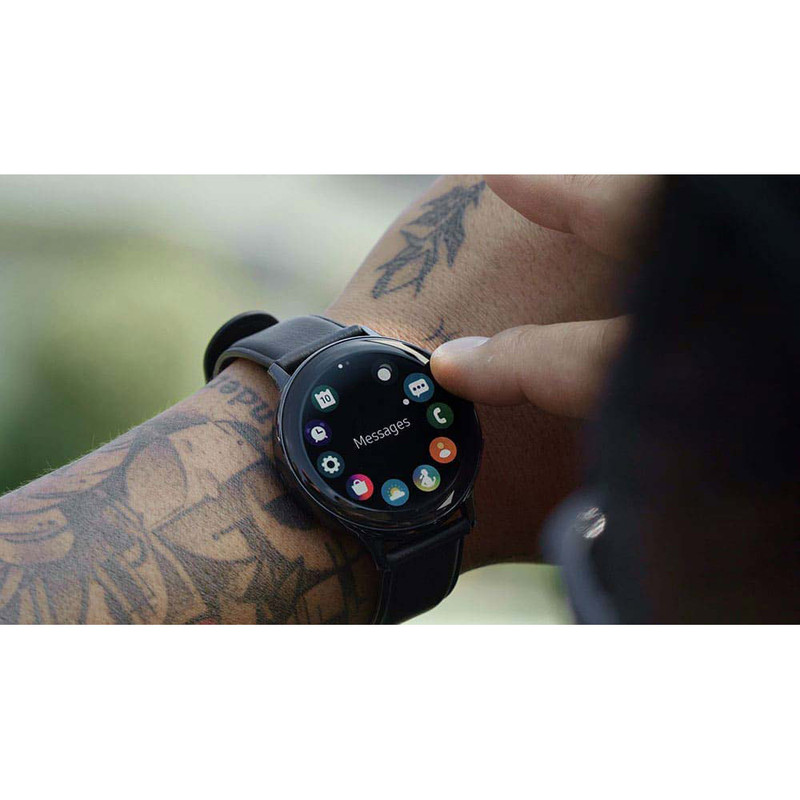 مدل « Galaxy Watch Active2» در سال 2019 و همزمان با Note 10 رونمایی شد. این محصول در دو نسخه 44 و 40 میلیمتری روانه بازار شده است. سامسونگ این مدل را فقط 6 ماه پس از عرضه Galaxy Watch Active روانه بازار کرده است. این ساعت هوشمند که استفادهی روزمره و ورزشی دارد، باعث میشود بتوانید از آن در تمامی لحظات روز استفاده کنید. باتوجه به طراحی اسپورت این ساعت، استفادهی آن برای خانمها و آقایان ممکن است. صفحهنمایش این ساعت 42 میلیمتری اندازهای 1.2 اینچی دارد و برای ساخت آن از فناوری super AMOLED استفاده شده است. رزولوشن صفحهنمایش 360 × 360 پیکسل است و تصویر واضح و شفافی را به نمایش میگذارد. این ساعت دارای حسگرهای متنوعی است که باعث میشود بتوانید فعالیتهای روزانهی خود را بهراحتی اندازهگیری کنید. این حسگرها شامل شتابسنج، ژیروسکوپ، الکتروکاردیوگرام، فشارسنج، سنسور نور محیط و شمارش ضربان قلب هستند. با بههمراهداشتن این ساعت، خیالتان بابت تمامی مسئولیتهایی که در طول روز دارید راحت میشود. قابلیت ضدآب این ساعت باعث میشود بتوانید از آن در شنا کردن استفاده کنید. گفتنی است قابلیتهایی مثل طراحی جدید حاشیه چرخان و رابط کاربری UI هم در ساعت هوشمند گلکسی Watch Active 2 وجود دارند. صفحه ساعت رابط کاربری بسیار آسانی دارد و کاربر میتواند فوراً و تنها با یک بار ضربه روی صفحه به اپلیکیشنهای مختلف دسترسی پیدا کند. گفتنی است طراحی موسوم به Aclipse در صفحه ساعت به شکلی است که رنگ آن متناسب با هر زمان از روز تغییر میکند.