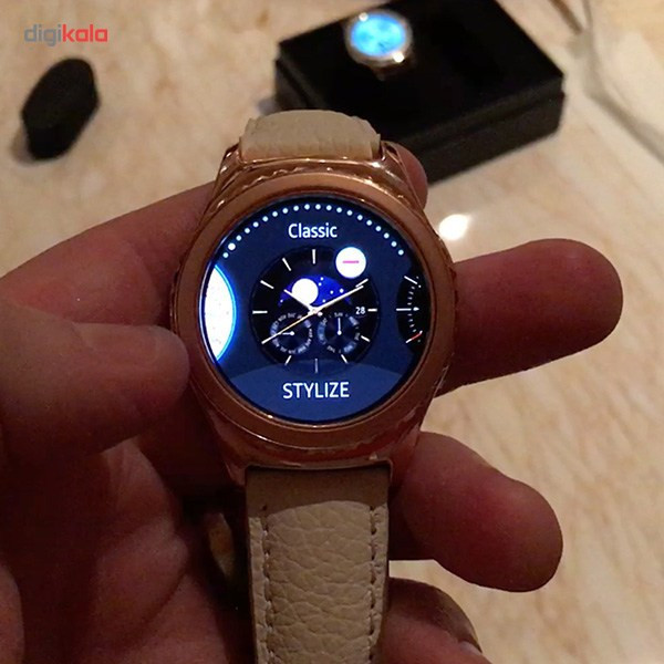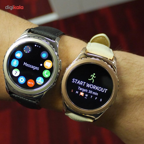 Gear S2 کلاسیک یکی از جدیدترین اعضای خانواده ساعتهای هوشمند ارائه شده در بازار این گجت جوان و محبوب است. این ساعت که با صفحهای گرد ارائه شده نشان دهنده نگرش جدیدی است که کارخانههای ساعت هوشمند به سلیقه و نظر کاربران دارند، نگرشی که بر اساس آن ساعتهای هوشمند بیش از پیش ظاهری شبیه ساعتهای کلاسیک و روزمره پیدا میکنند. از نظر ظاهری میتوان گفت که طراحی این ساعت طیف گستردهای از سلیقه کاربران را پوشش میدهد. Gear S2 در دو مدل کلاسیک و اسپرت طراحی و ارائه شده که در مدل کلاسیک برای آن یک بند چرمی مرغوب و لطیف و برای مدل اسپرت آن یک بند سیلیکونی نرم و سبک در رنگهای متنوع و جذاب در نظر گرفته شده است. قاب گردان این ساعت هوشمند که در ادامه به آن خواهیم پرداخت نیز در مدل اسپرت به شکل یک دایره ساده و شکیل و در مدل کلاسیک به شکل دایرهای با لبه موجدار طراحی شده که ظاهری متفاوت و جذاب به این محصول سامسونگ داده است. استیل مقاوم بدنه و کریستال خاصی که برای محافظت از صفحه این ساعت هوشمند به کار گرفته شده، به خوبی از آن در برابر ضربهها و خراشهای احتمالی مراقبت میکند. این ساعت مانند برادر بزرگتر خود باز هم به سیستم عامل تایزن مجهز شده است. سیستم عاملی که سامسونگ آن را به صورت اختصاصی تولید کرد و ترجیح داد در میان دیگر ساعتهای هوشمند از این طریق اعلام استقلال کند. اما این تنها نکتهای نیست که جدیدترین ساعت هوشمند سامسونگ را از رقبا متمایز میکند! راههای ارتباط کاربر با این ساعت هوشمند، علاوه بر دو کلید در سمت راست قاب و صفحه تاچاسکرین، قاب گردان آن است. کاربر این ساعت میتواند با چرخاندن قاب ساعت خود به طرفین، به منوهای مختلف، اپلیکیشنها و تنظیمات مختلف دسترسی داشته باشد. صفحه کاملا دایره 1.2 اینچی این ساعت که با استفاده از فناوری sAMOLED با رزولوشن 360×360 پیکسل ساخته شده، علاوه بر مصرف بسیار پایین باتری نسبت به دیگر رقبا، از درخشندگی و شفافیت بالایی بهره میبرد و نگاه افراد را به سوی خودش جلب میکند. سامسونگ فقط در مدل 3G این ساعت از فناوری GPS استفاده کرده که طرفداران و منتفدان S2 از آن به عنوان یک عیب یاد میکنند.