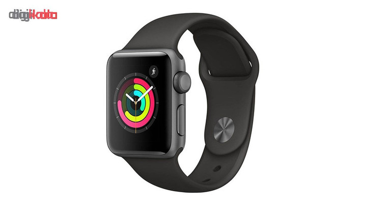 ساعت هوشمند اپل واچ سری 3 جی پی اس مدل 38mm Aluminum Case with Black Sport Silicon Band