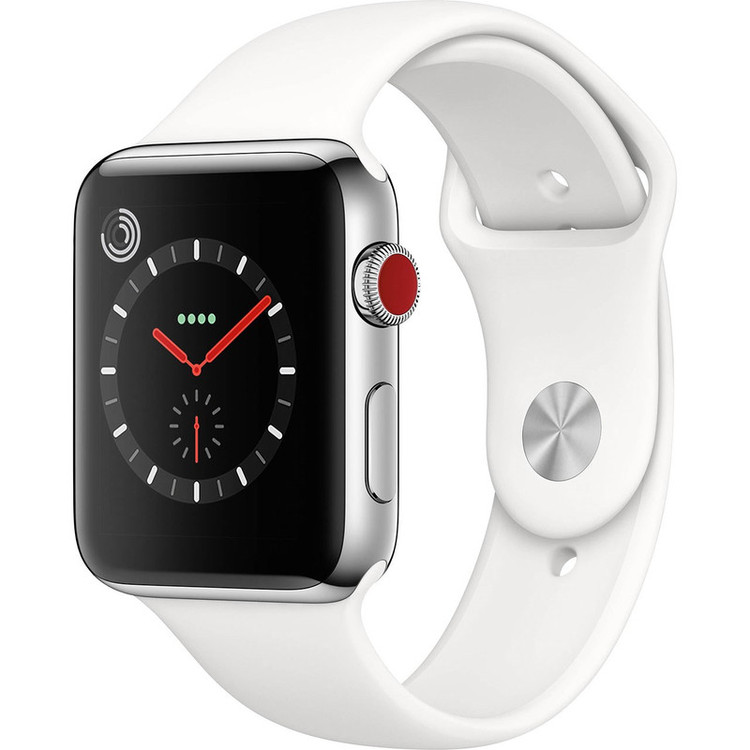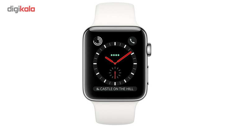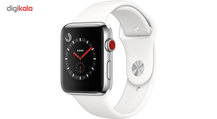 ساعت هوشمند اپل واچ سری 3 سلولار مدل 42mm Stainless Steel Case with Soft White Sport Silicon Band