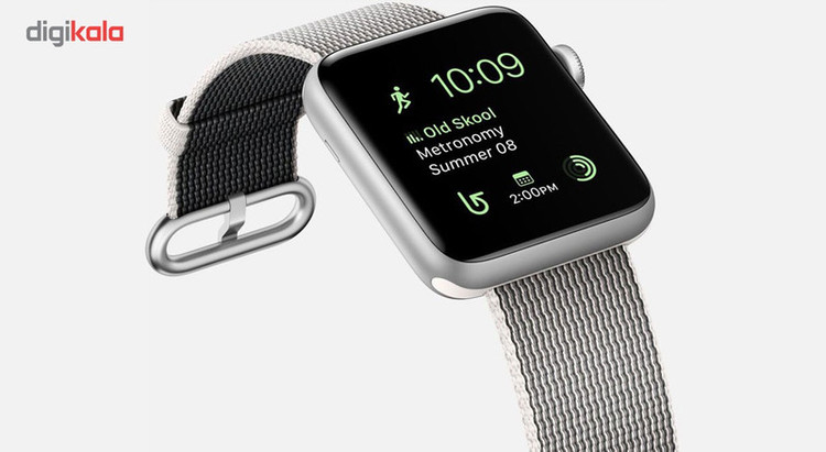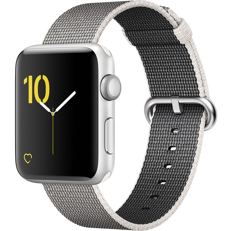 ساعتهای هوشمند «اپلواچ» (Apple Watch) نهتنها همانند دیگر محصولات این شرکت مطرح از کیفیت، کارایی و طراحی بسیار زیبا بهره میبرند، بلکه تنوعی قابلتوجه را نیز به همراه دارند. اپلواچ 2 (Series 2) مدل «Silver Aluminum Case with Pearl Woven Nylon» با قاب 42 میلیمتری از مدلهای نسل دوم این گجت است که از ترکیب رنگ و ابعادی مناسب برای آقایان و بانوان برخوردار است. این مدل دارای قابی آلومینیومی به رنگ نقرهای بوده و شیشهای از نوع Ion-X برای آن در نظر گرفته شده است. این ساعت از نسل دوم قابلیتهای بسیاری دارد که به اختصار مهمترین آنها را بررسی خواهیم کرد. مهمترین مزیت در این مدل مقاومت قابلتوجه در برابر آب (تا فشار 50 متر) است که به موجب آن میتوان از ساعت برای ورزشهای آبی یا شنا نیز استفاده کرد. البته باید توجه داشت که بندهای نایلونی و استیل برای شنا خیلی مناسب نیستند و بهتر است بندهای اسپرت یا سیلیکونی برای ساعت تهیه و استفاده شود. GPS داخلی هم دیگر قابلیتی است که بسیاری از کاربران ورزشکار و ورزشدوست منتظر آن بودند. بدین ترتیب میتوان به هنگام دویدن بدون همراه داشتن آیفون خود، مسیر و مسافت را ثبت و بعدا بررسی کرد. نمایشگر 1.65 اینچی OLED هم با روشنایی دوچندان (1000nits) بررسی اعلانها را جذابتر و در کل ساعت را کارآمدتر از پیش کرده است. پردازشگر دوهستهای (S2 dual-core) و یک پردازندهی مستقل گرافیکی در نسل دوم سرعت عملکرد را تا حد مطلوبی افزایش داده است. دیگر موردی که پیشرفت داشته، باتری ساعت است که ظرفیت آن با توجه به پیشرفتهای سختافزاری به اندازهای مطلوب بیشتر شده تا حداقل کاربر شاهد افت شارژدهی نباشد. نسخهی جدید سیستم عامل یعنی WatchOS 3 که به صورت پیشفرض روی ساعت نصب است، ابزارهای بیشتری را در اختیار کاربر قرار میدهد تا استفاده از ساعت جذاب تر از همیشه باشد. این گجت دوستداشتنی که به دلیل بدنهی آلومینیومی نسبت به مدلهای استیل از قیمت مناسبتری برخوردار است.