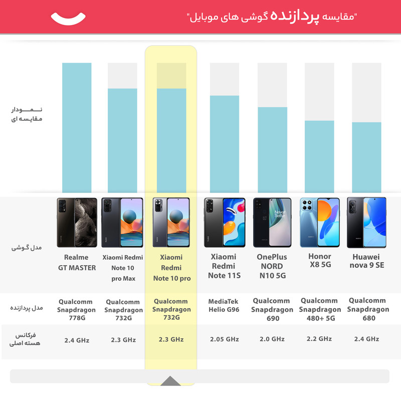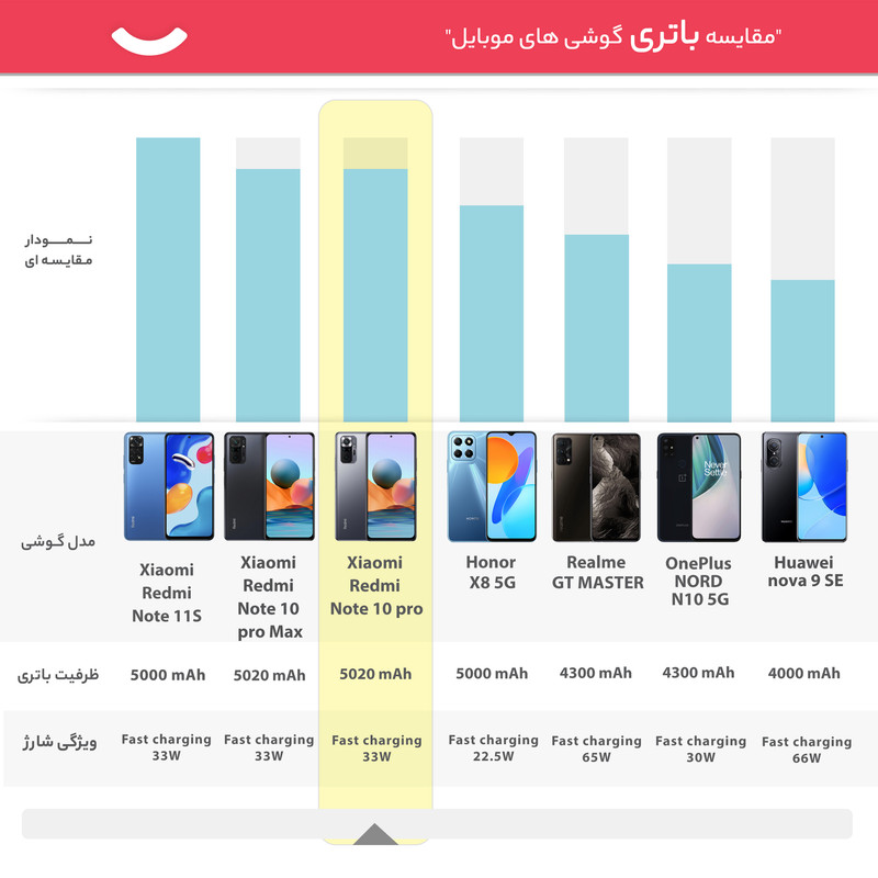 گوشی موبایل شیائومی مدل Redmi Note 10 pro دو سیم کارت ظرفیت 128 گیگابایت وارد بازار شده است. شیائومی در مارس 2021، نسل دهم از گوشیهای Redmi Note خود را معرفی کرده است. گوشی « Redmi Note 10 pro » مانند نسخههای قبلی این سری از گوشیهای شیائومی از صفحهنمایش بزرگ، باتری پرقدرت، طراحی جذاب دوربین و سختافزار مناسب برای اجرای بازی برخوردار است. این مدل با پنل AMOLED ساختهشده و فاصله لبه صفحهنمایش در آن بسیار کم است. این نمایشگر 6.67 اینچی حدود 395 پیکسل را در هر اینچ جا داده است. بدنه و نمایشگر این محصول با استفاده از Corning Gorilla Glass 5 محافظت میشود تا گوشی در برابر خط وخش ایمن باشد. ویژگی دیگر Redmi Note 10 pro مجهز شدن به حسگر اثرانگشت بر روی لبه کناری آن است. شیائومی برای این محصول خود از یک دوربین چهارگانه استفاده کرده است. لنزعریض 108 مگاپیکسلی، لنز فوق عریض 8 مگاپیکسلی، لنز ماکرو با کیفیت 5 مگاپیکسل و سنسور عمق 2 مگاپیکسلی مجموعه دوربین Redmi Note 10 pro را تشکیل میدهد. یک دوربین سلفی 16 مگاپیکسلی هم در مرکز بالای نمایشگر این گوشی به کار گرفته شده است. ازنظر سختافزاری هم این گوشی از تراشه Snapdragon 732G بهره میبرد که در آن پردازندهای هشتهستهای و قدرتمند قرارگرفته است. حافظه رم با ظرفیت 6 گیگابایت هم در کنار این مجموعه قرار گرفته است تا بتواند علاوهبر کارهای معمول، از قابلیتهای جدید گوشیهای امروزی پشتیبانی کند. باتری 5020 میلیآمپرساعتی با پشتیبانی از شارژ سریع 33 وات، درگاه ارتباطی USB Type-C 2.0 و جک 3.5 میلیمتری صدا هم از دیگر مشخصات این محصول جدید است.
