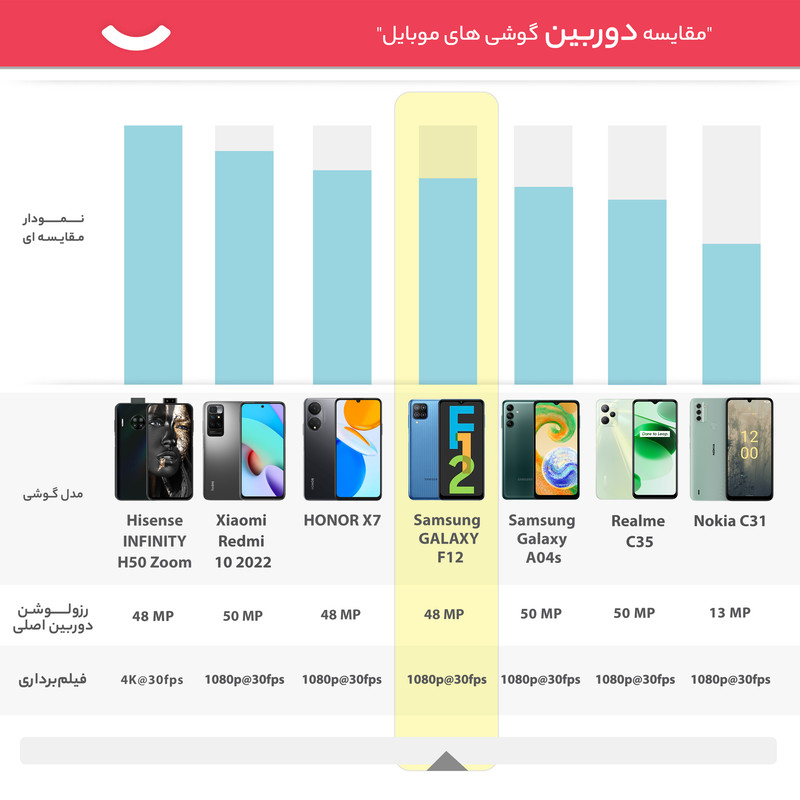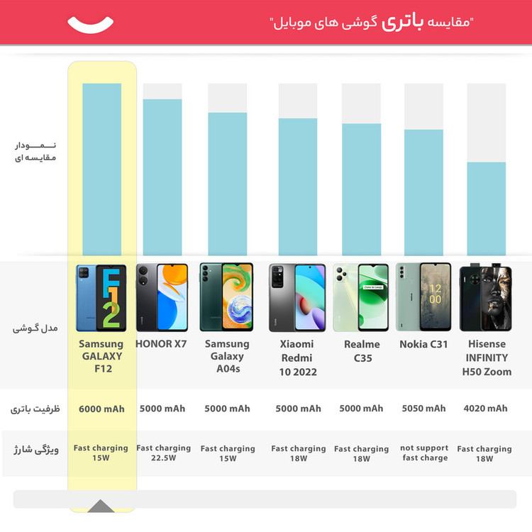 گوشیهای میانرده در بین کاربران طرفداران بسیاری دارد و سامسونگ هم در این زمینه توانسته است عملکرد بسیار خوب و قابل قبولی را بهنمایش بگذارد. سامسونگ GALAXY F12 SM-F127G/DS هم یکی از همین گوشیهای باکیفیت است که با توجه به قیمت در نظر گرفته شده، از مشخصات فنی مناسب و قابل قبولی بهره برده است. سامسونگ GALAXY F12 SM-F127G/DS به صفحهنمایش با ابعاد 6.5 اینچ و رزولوشن 720×1600 پیکسل از نوع PLS LCD مجهز شده که توانایی نمایش 270 پیکسل در هر اینچ را دارد. جالب است که این صفحهنمایش توانایی اراسه نرخ بروزرسانی 90 هرتز را هم دارد که نوید صفحهنمایشی روان (نرخ بروزرسانی در اجرای بازی و تماشای ویدیوهای باکیفیت بیشتر مشهود است) و باکیفیت را میدهد. طراحی نمای روبهرویی این گوشی طراحی آشنایی است و بریدگی قطرهای شکل ناچ در قسمت بالایی و مرکزی صفحهنمایش، سنسور دوربین سلفی با رزولوشن 8 مگاپیکسل را در خود جای داده است. سنسور دوربین اصلی و قدرتمند با رزولوشن 48 مگاپیکسل از نوع عریض در کنار سنسور 5 مگاپیکسل از نوع فوق عریض (ultrawide) و دو سنسور 2 مگاپیکسل از نوع ماکرو و سنجش عمق، سنسورهای دوربین چهارگانه این گوشی هوشمند میانرده را تشکیل میدهند. پردازنده اختصاص اگزینوس 850 سامسونگ با معماری 8 نانومتری هم این گوشی میانرده را همراهی میکند و توانایی ارائه عملکرد قابل قبولی را در اجرای بازیهای حتی سنگین (مثل کالآفدیوتی موبایل و آسفالت 9 البته تنظیمات گرافیکی بازی روی حالت LOW) را دارد. حضور باتری قدرتمند با میزان ظرفیت 6000 میلیآمپرساعت که در بین گوشیهای هوشمند میانرده در این بازه قیمتی، یکی از قدرتمندترین باتریها به حساب میآید، سبب شده تا GALAXY F12 SM-F127G/DS به ازای هر بار شارژ صد درصدی، طول عمر مفید (زمان آماده بهکار) بسیار خوبی را ارائه میکند. گوشیهای اکتیو هم به این شکل هستند که به دلیل محدودیتهای برخی از محصولات برای کشور ایران، در کشورهای همسایه بهصورت رسمی با یک بار قرار گرفتن سیمکارت، اکتیو شده تا امکان استفاده در کشور وجود داشته باشد و پلمپ میشوند و باید بدانید که این پروسه هیچ مشکلی در راستای گارانتی کالا بههمراه ندارد.