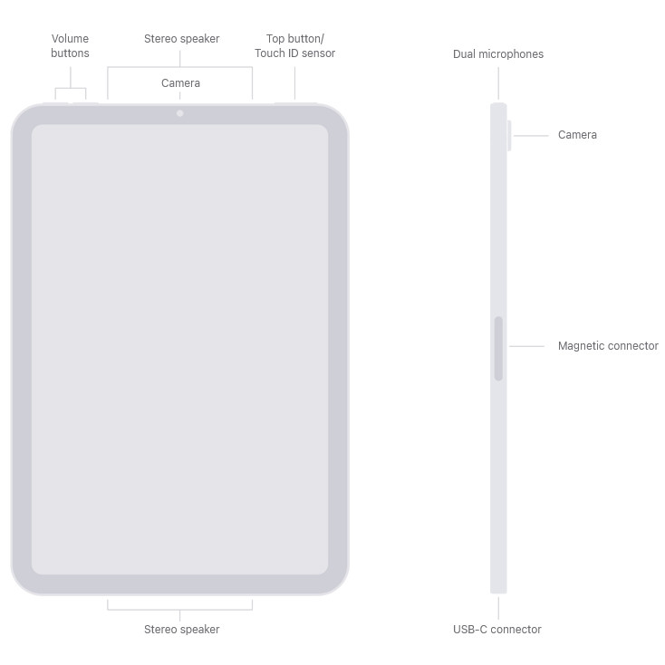 تبلت iPad Mini 7th Generation 2024 Wi‑Fi یک دستگاه جمعوجور و قدرتمند با صفحهنمایش ۸.۳ اینچی Retina IPS LCD است که وضوح تصویر ۲۲۶۶×۱۴۸۸ پیکسل و روشنایی حداکثر ۵۰۰ نیت ارائه میدهد. نسبت تصویر ۳:۲ و پوشش رنگ Wide color (P3) تجربه دیداری شفاف و زندهای فراهم میکند. بدنه این تبلت از فلز ساخته شده و قسمت جلویی آن شیشهای است، ابعاد آن ۱۹۵.۴x۱۳۴.۸x۶.۳ میلیمتر و وزنش ۲۹۳ گرم است که حمل و استفاده طولانیمدت را راحت میکند. پردازنده این مدل تراشه ۳ نانومتری Apple A17 Pro با ۶ هسته (۲ هسته Performance و ۴ هسته Efficiency) و پردازنده گرافیکی ۵ هستهای Apple GPU است، که عملکرد سریع و روان در بازیها و برنامههای سنگین را تضمین میکند. حافظه داخلی ۲۵۶ گیگابایت و رم ۸ گیگابایت سرعت و ظرفیت کافی برای ذخیره و پردازش دادهها فراهم میکند. در زمینه ارتباطات، تبلت از Wi‑Fi دوبانده ۸۰۲.۱۱ a/b/g/n/ac/۶e، بلوتوث نسخه ۵.۳ و پورت USB Type-C با پشتیبانی از DisplayPort بهره میبرد. از سیمکارت پشتیبانی نمیکند و فناوری مکانیابی شامل GPS و GLONASS است. دوربین اصلی ۱۲ مگاپیکسل با لنز عریض، فوکوس خودکار، Smart HDR 4، لرزشگیر و فیلمبرداری ۴K تا ۶۰ فریم بر ثانیه است. دوربین سلفی نیز ۱۲ مگاپیکسل فوقعریض با زاویه ۱۲۲ درجه و قابلیت فیلمبرداری ۱۰۸۰p ارائه میدهد. باتری ۵۰۷۸ میلیآمپر ساعتی (۱۹.۳ واتساعت) امکان تماشای فیلم یا وبگردی تا ۱۰ ساعت را فراهم میکند. اسپیکرهای استریو چهارگانه صدای قدرتمند و شفاف تولید میکنند. این تبلت از قلمهای Apple Pencil و Apple Pencil Pro پشتیبانی میکند و شامل کابل USB Type-C و شارژر ۲۰ وات است. حسگرهای شتابسنج، ژیروسکوپ، فشارسنج و قطبنما نیز امکانات تکمیلی برای اپلیکیشنها و بازیها فراهم میکنند.