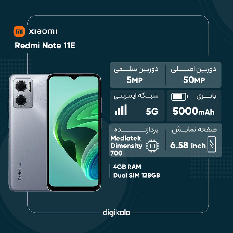 گوشی موبایل شیائومی مدل Redmi Note 11E 5G دو سیم کارت ظرفیت 128 گیگابایت و رم 4 گیگابایت - پک چین