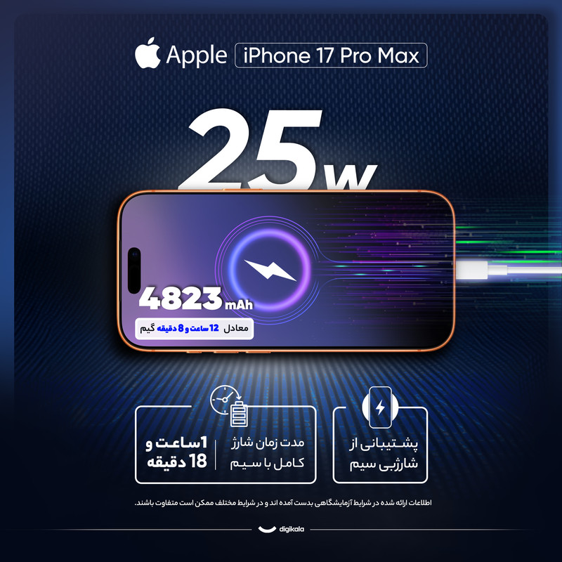 آیفون ۱۷ پرو مکس جدیدترین پرچمدار اپل است که با ترکیب طراحی نوآورانه، قدرت سختافزاری و قابلیتهای نرمافزاری پیشرفته، استانداردهای تازهای را در بازار گوشیهای هوشمند تعریف میکند. بدنه این دستگاه از آلومینیوم فورجشده ساخته شده که علاوه بر سبکی، انتقال حرارت بهتری نسبت به نسل قبل دارد و همراه با پوشش مقاوم Ceramic Shield نسل دوم، استحکام و ظاهری مدرن را به همراه آورده است. نمایشگر ۶.۹ اینچی Super Retina XDR OLED با رزولوشن بالا، روشنایی ۳۰۰۰ نیت و پشتیبانی از ProMotion، HDR10 و Dolby Vision تجربهای بینظیر در تماشای محتوا و اجرای بازیها ارائه میدهد. قلب تپنده این گوشی تراشه قدرتمند A19 Pro با معماری سه نانومتری است که در کنار سیستم خنککننده Vapor Chamber و رم ۱۲ گیگابایتی، عملکردی سریع و پایدار حتی در پردازشهای سنگین تضمین میکند. آیفون ۱۷ پرو مکس در ظرفیتهای ۲۵۶ گیگابایت تا ۲ ترابایت عرضه میشود تا فضای کافی برای محتوای حرفهای فراهم کند. در بخش دوربین، سیستم سهگانه ۴۸ مگاپیکسلی شامل لنز اصلی، فوقعریض و تلهفوتو پریسکوپی با زوم اپتیکال ۴ برابر قرار گرفته است که امکان ثبت تصاویر و ویدئوهای 4K با کیفیت عالی و حتی ضبط همزمان از دوربین جلو و عقب را فراهم میکند. دوربین سلفی ۱۸ مگاپیکسلی نیز با قابلیت Center Stage برای تماسهای ویدیویی و شبکههای اجتماعی بهینه شده است. باتری این مدل تا ۳۹ ساعت پخش ویدئو را پشتیبانی کرده و با شارژ سریع ۳۰ واتی تنها در ۲۰ دقیقه تا ۵۰ درصد شارژ میشود. پشتیبانی از MagSafe و Qi2 نیز تجربه شارژ بیسیم را ارتقا داده است. این گوشی با iOS 26 و مجموعه قابلیتهای هوش مصنوعی Apple Intelligence عرضه میشود و در کنار مقاومت IP68 و دکمه اکشن شخصیسازیشده، تجربهای کامل و بیرقیب را برای کاربران حرفهای و علاقهمندان رقم میزند.
