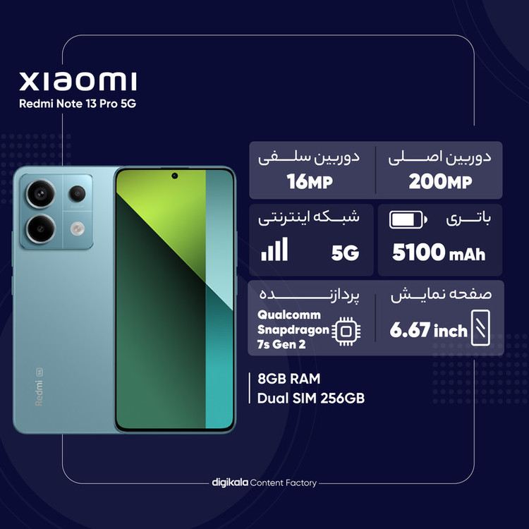 گوشی موبایل شیائومی مدل Redmi Note 13 Pro 5G دو سیم کارت ظرفیت 256 گیگابایت و رم 8 گیگابایت