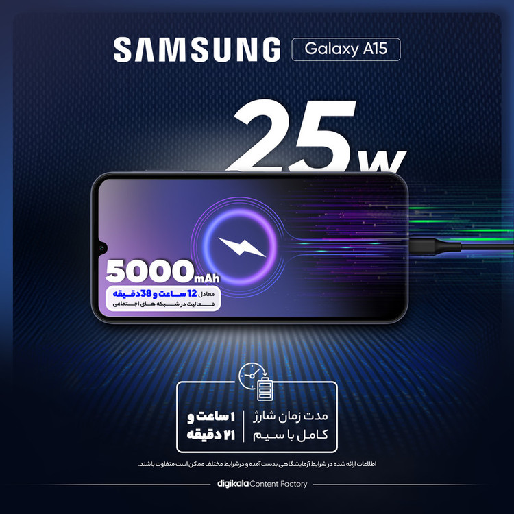 گوشی موبایل سامسونگ مدل Galaxy A15 دو سیم کارت ظرفیت 128 گیگابایت و رم 4 گیگابایت به همراه شارژر سامسونگ - ویتنام