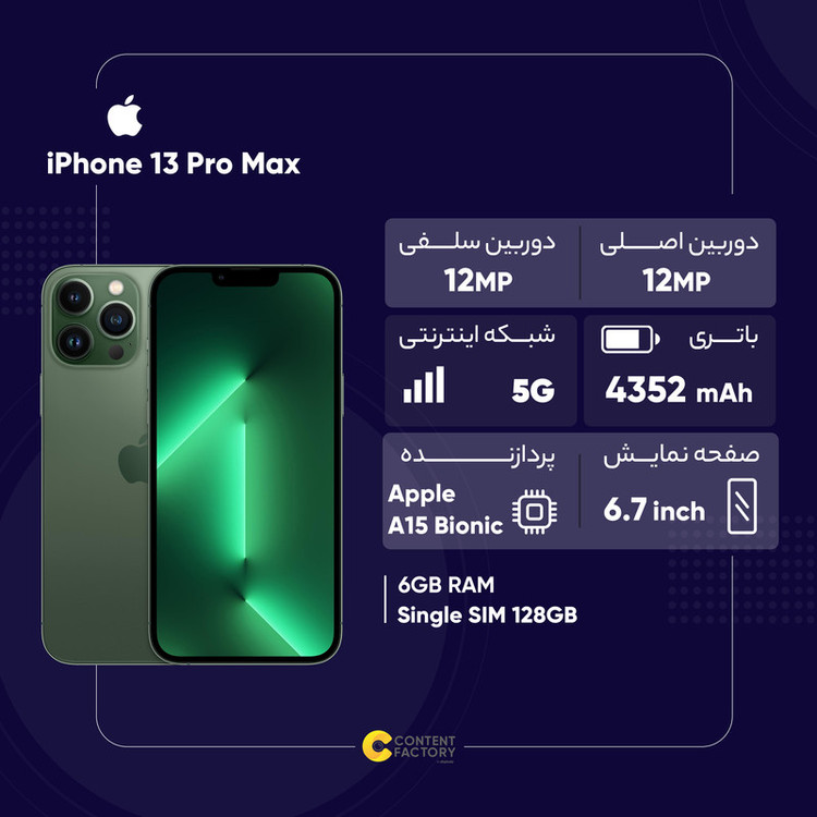گوشی موبایل اپل مدل iPhone 13 Pro Max LLA تک سیم کارت ظرفیت 128 گیگابایت و رم 6 گیگابایت - اکتیو